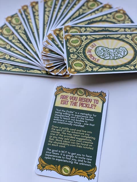 The Lady behind this magical card deck asks “Are you ready to eat the pickle?”